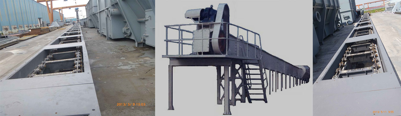 刮板输送机是以沿轨道运行的刮板来水平或倾斜输送物料的没备,广泛应用于钢渣、灰渣、飞灰等散装物料的输送。刮板输送机具有输送能力大、使用寿命长、运行成本低等优点。通过不同结构的刮板输送机组合布置,能够实现长距离、跨空间的输送工况。
