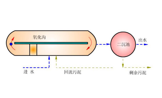 氧化沟工艺又名氧化渠工艺,它是活性污泥法的一种变型。因其构筑物呈封闭的环形沟渠而得名。因为污水和活性污泥在曝气渠道中不断循环流动,因此有人称其为“循环曝气池”、“无终端曝气池”。